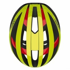 Le Abus Viantor jaune fluo et rouge est le casque léger de haute qualité pour lequel nous avons utilisé de nombreuses technologies présentes dans le cyclisme professionnel. Sa compatibilité avec les queues-de-cheval en fait le premier choix des coureurs ayant de longs cheveux.