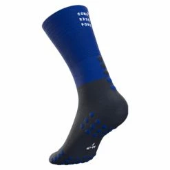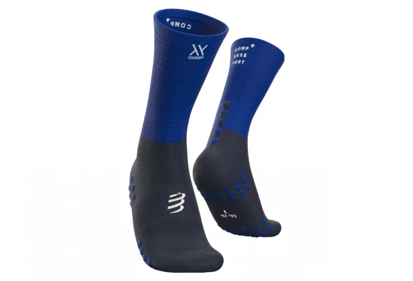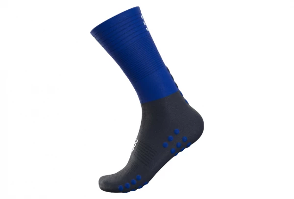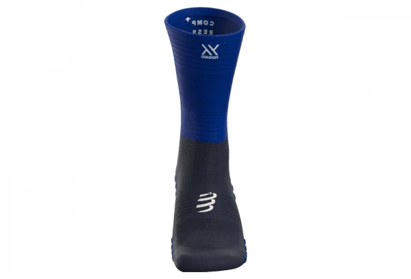 Mi-chaussette de compression bleue, extra lĂ©gère, associant les technologies d’un manchon de mollet Ă une ventilation exceptionnelle