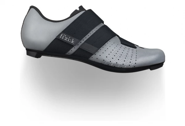 La Fizik Tempo Powerstrap R5 Reflective  est une chaussure de vélo de route polyvalente avec une fermeture Velcro innovante, maintenant avec une finition réfléchissante.