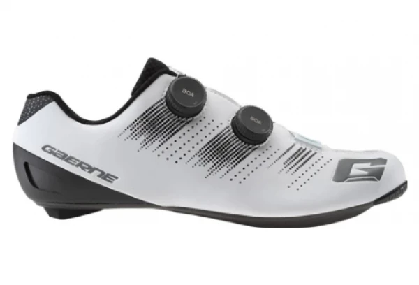 - GAERNE EPS SEMELLE EN CARBONE LÉGÈRE ET LÉGÈRE 12.0 Ultra légère et ultra mince, le tissage optimisé en fibre de carbone garantit le transfert de chaque watt de puissance aux pédales. La stabilité du pied est accrue grâce à la forme de la semelle dans la zone de l’arche plantaire. Quatre ouvertures d’aération garantissent la ventilation à l’intérieur de la chaussure. La semelle a un insert anti-dérapant dans la pointe et un coussin interchangeable à l’arrière. Les options de positionnement des taquets ont été augmentées de 9 mm par rapport à la semelle précédente. Une échelle d’alignement imprimée sur la semelle vous permet de mémoriser la position du taquet. Indice de rigidité exceptionnelle de 12.