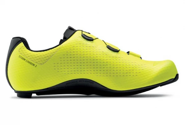 Parmi les chaussures de la gamme Route chez Northwave, le modèle Storm Carbon 2 s’impose pour tous les pratiquants recherchant la performance pendant les entrainements ou la compĂ©tition. Elle dispose d’une semelle en carbone avec un indice de rigiditĂ© important pour permettre de dĂ©velopper une plus grande efficacitĂ©. Le chaussant est conçu pour s’adapter Ă la morphologie du pied de chaque coureur, pour y garantir un confort optimal. L’ensemble est complĂ©tĂ© par des inserts en Mesh pour accentuer la respirabilitĂ©.Â