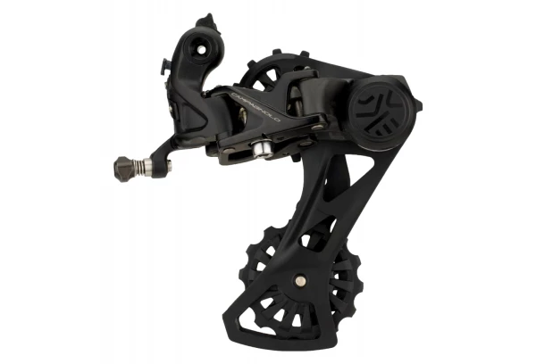Le design du dérailleur Campagnolo Ekar, avec une cage de longueur moyenne, est compatible avec les différentes dimensions de pignons sur les trois options de cassette, de 9-36 à 10-44, ce qui est idéal pour toutes les exigences du gravel.