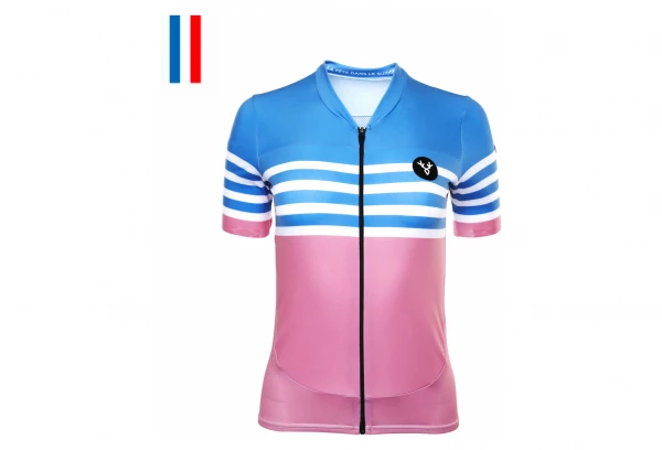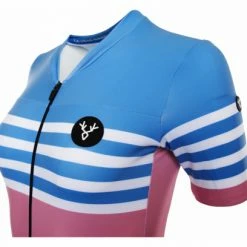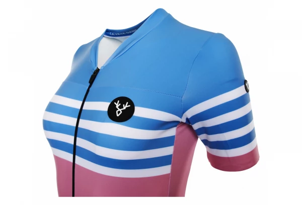 Maillot Manches Courtes Femme LeBram Tourmalet Ciel Coupe Ajustée Bleu / Rouge