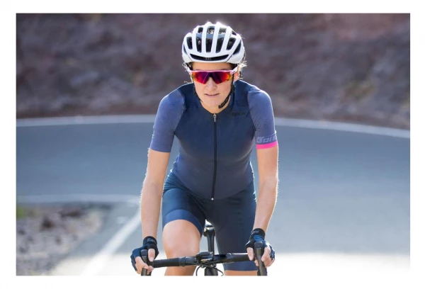 La solution Aero innovante. Maillot femme à la coupe aérodynamique en tissu maillé Prey Shuttle respirant et léger. Développé suivant les précieux conseils de Lizzie. Une solution élégante, parfaite pour les conditions estivales chaudes et incroyablement aérodynamique grâce à la combinaison de tissu et à la coupe spéciale sur le haut du corps.