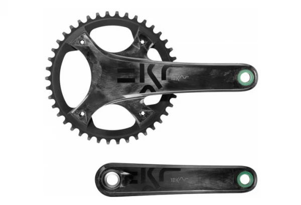 Une solution parfaite pour les parcours gravel. Les deux manivelles réalisées en fibre de carbone UD sont dotées de demi-axes en acier AISI 630 : comme sur tout le groupe Ekar, l’association ingénieuse de matériaux permet d’obtenir des composants légers, mais dont l’efficacité et la résistance sont maximales.