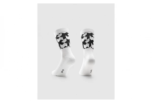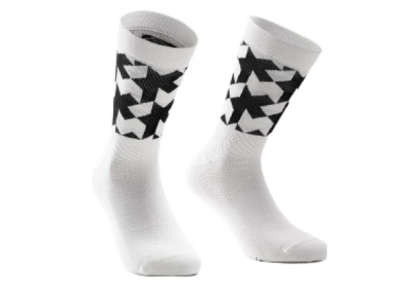 Les chaussettes Assos Monogram Evo, vos favorites, sont maintenant disponibles en longueur 18 cm et arborant son graphisme contrasté – toujours aussi respirantes.