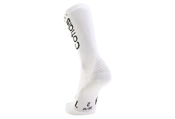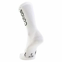 L’exigence de la pratique du cyclisme professionnel a permis de dĂ©velopper des chaussettes techniques de grande qualitĂ© montant jusqu’Ă la base du mollet.