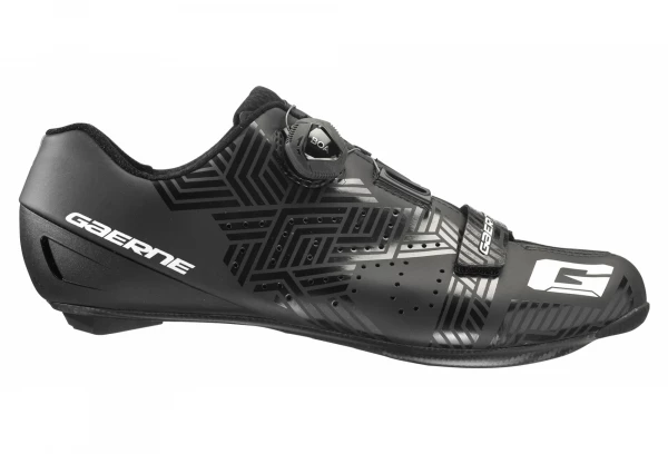 GAERNE EPS SEMELLE EN CARBONE LÉGÈRE ET LÉGÈRE 12.0 Ultra légère et ultra mince, le tissage optimisé en fibre de carbone garantit le transfert de chaque watt de puissance aux pédales. La stabilité du pied est accrue grâce à la forme de la semelle dans la zone de l’arche plantaire. Quatre ouvertures d’aération garantissent la ventilation à l’intérieur de la chaussure. La semelle a un insert anti-dérapant dans la pointe et un coussin interchangeable à l’arrière. Les options de positionnement des taquets ont été augmentées de 9 mm par rapport à la semelle précédente. Une échelle d’alignement imprimée sur la semelle vous permet de mémoriser la position du taquet. Indice de rigidité exceptionnelle de 12.