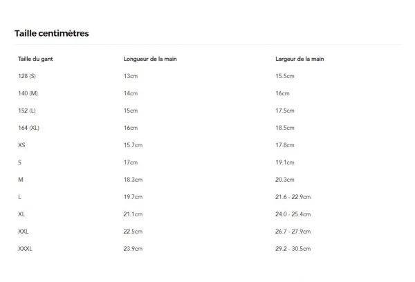- Lanières sur les doigts pour retirer plus facilement les gants.