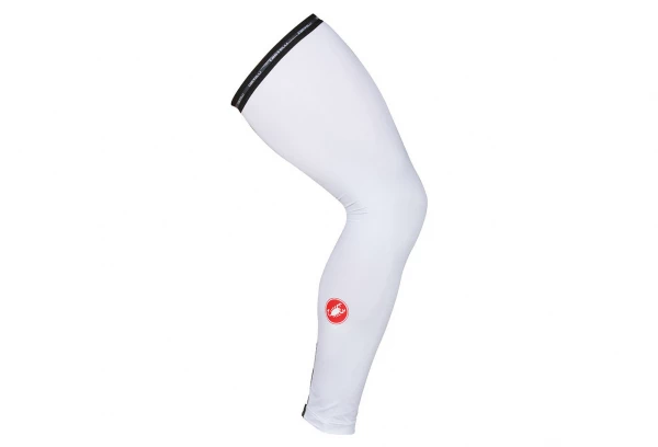 Ces jambières Castelli UPF 50+ Blanc sont fabriquées en polyester pour bloquer 99.8% des UV nocifs pour la peau. Elles sont construite sans couture pour éviter toute iritations