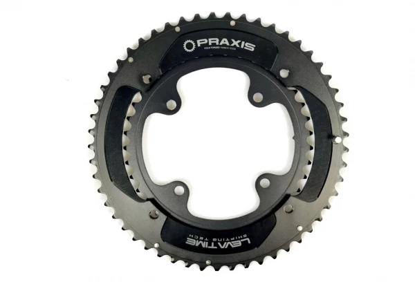 - Campagnolo– Praxis rings shift great with the EPS and mechanical Campy 10/11sp drivetrains. Highly suggest Shimano, KMC, or Campy chain. These rings are not compatible with Campy 5-arm cranks as they have proprietary bolt pattern that is not 110BCD or 130BCD