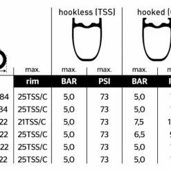 | 700 x 25C | 25-622 | 109 psi | 250 g | 101866 |