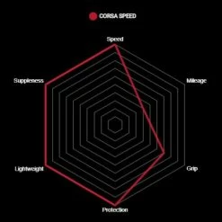 Il utilise le composé exclusif Graphene G+ ISOtech qui est associé à une carcasse Corespun-T ultra fine pour une faible résistance au roulement tout en offrant la souplesse caractéristique de la marque Corsa et une adhérence exceptionnel par temps de pluie.