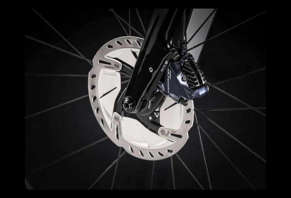 | Fourche | Domane SLR carbone, pivot conique carbone, acheminement interne des câbles de frein, fixations pour garde-boue, freins Ă disque Ă fixation Flat-Mount, pattes en carbone, axe traversant 12×100 mm |