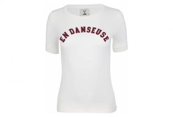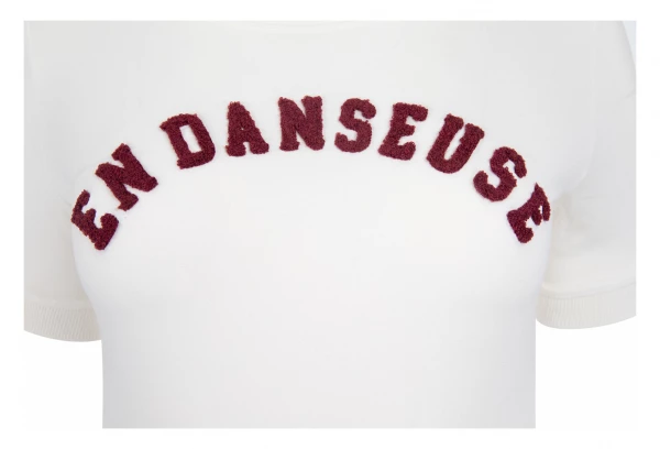 Ce t-shirt à la coupe crop top très féminin, au rendu confortable porté et qualitatif au touché est construit en 100% coton flammé 180grs/m². Les lettres en feutrine sont appliquées sur le torse pour une qualité irréprochable et un style bien rétro !